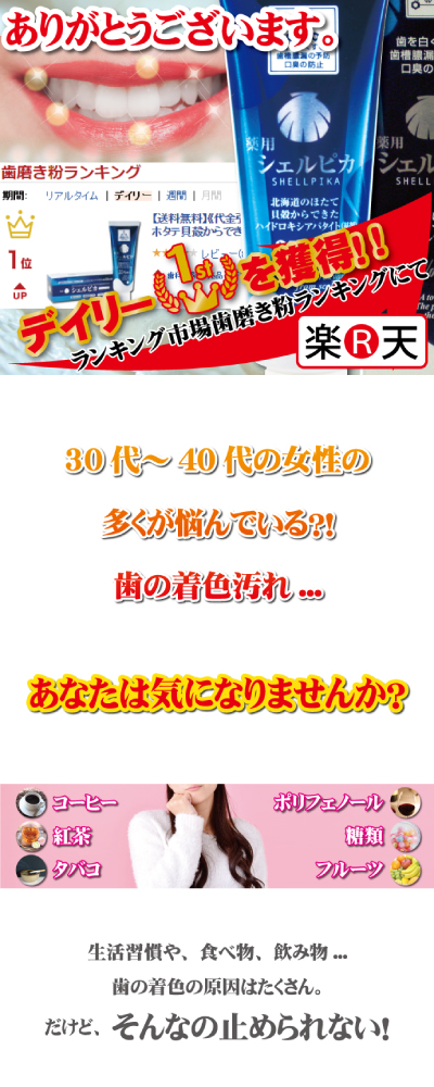 本商品は、2016年2月6日、4月8日、7月14日にダイエット・健康ジャンル デンタルケア部門 歯磨き粉 デイリーランキングで第1位を獲得しております。