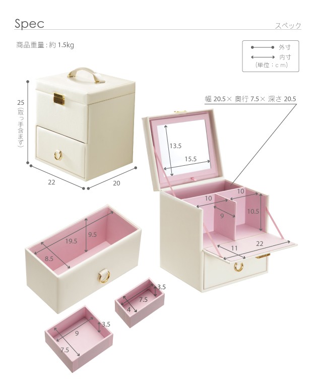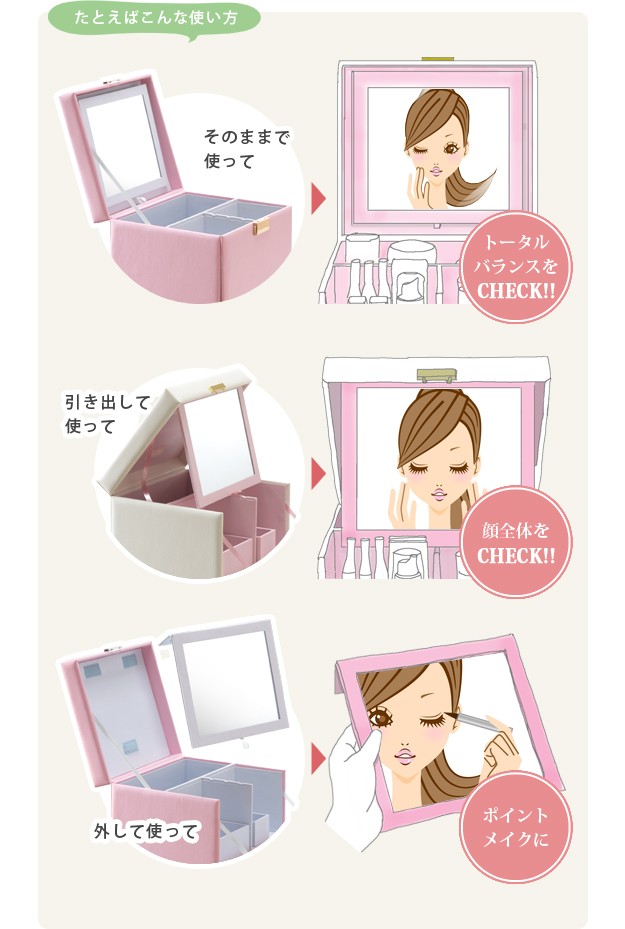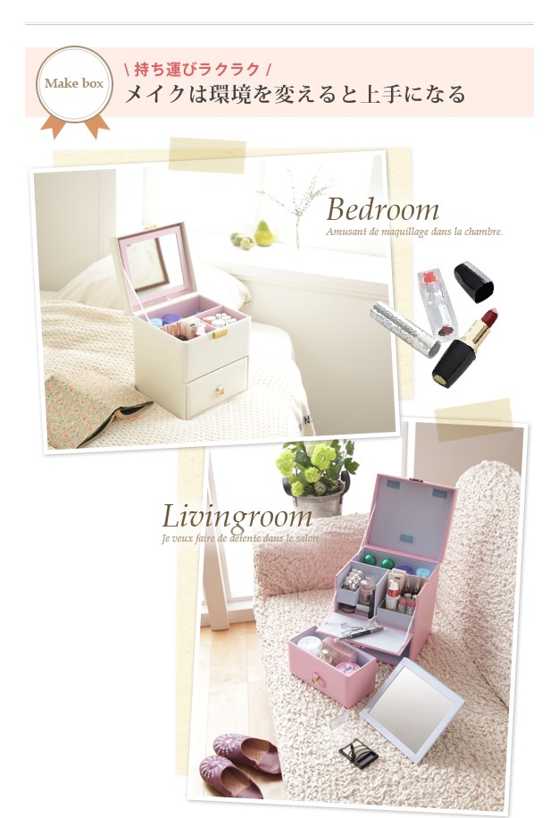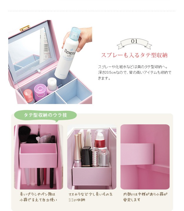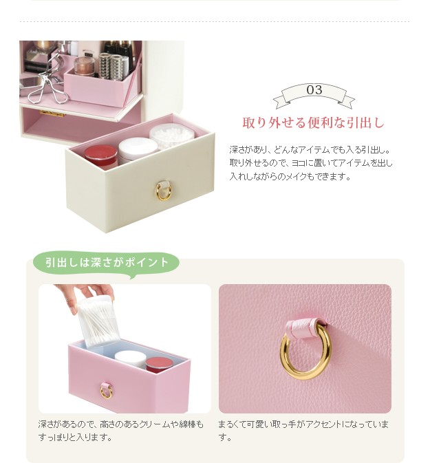 完成品 コスメボックス メイク 収納 〔コフレ〕 メイクボックス バニティ ケース ボックス コンパクト ドレッサー BOX 化粧入れ 鏡付き 姫(代引不可)【送料無料】