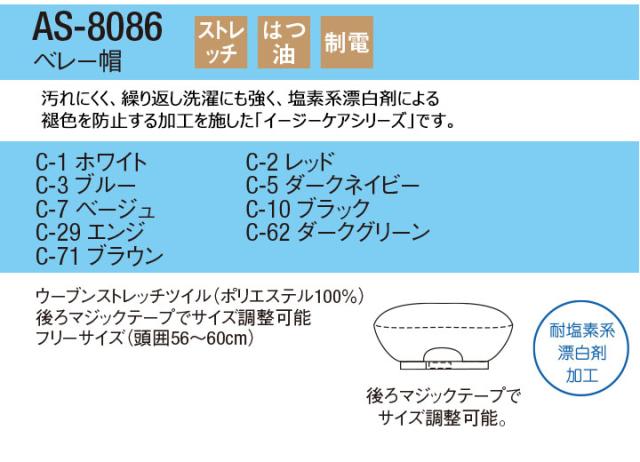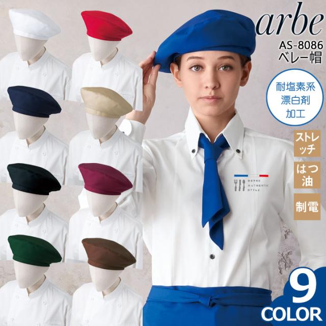 ベレー帽 アルべ arbe AS-8086 【男女兼用】カフェ 飲食店 サービス業 制服 レストラン ユニフォーム チトセ ストレッチ はつ油 制電 マジックテープ