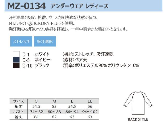 ミズノ スクラブインナーシャツ レディース 7分袖 MZ-0134 医療用 白衣 看護師 女性用 アンダーシャツ 吸汗速乾 DRY インナーウェア アンダーウェア 介護士 クリニック 制服 ストレッチ オールシーズン MIZUNO