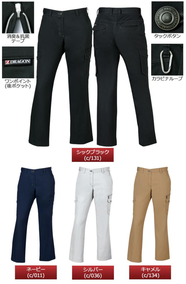 Z-DRAGON レディースカーゴパンツ 75216ハードな現場に最適な綿100%カジュアルワークウエア。 時代とともに多様化するニーズに応え、 活躍するシーンを選ばない「Z-DRAGON」 世界へはばたくワーカーの為のブランド。●素材:サマーツイル●混率:綿100%●機能:消臭、抗菌●サイズ59サイズ:ウエスト72cm、ヒップ90cm、ワタリ幅30.5cm、股下78cm61サイズ:ウエスト74cm、ヒップ92cm、ワタリ幅31cm、股下78cm64サイズ:ウエスト77cm、ヒップ95cm、ワタリ幅32cm、股下78cm67サイズ:ウエスト80cm、ヒップ98cm、ワタリ幅33cm、股下78cm70サイズ:ウエスト83cm、ヒップ101cm、ワタリ幅34cm、股下78cm73サイズ:ウエスト86cm、ヒップ104cm、ワタリ幅35cm、股下78cm76サイズ:ウエスト89cm、ヒップ107cm、ワタリ幅36cm、股下78cm81サイズ:ウエスト94cm、ヒップ112cm、ワタリ幅37cm、股下78cm86サイズ:ウエスト99cm、ヒップ117cm、ワタリ幅38cm、股下78cm91サイズ:ウエスト104cm、ヒップ122cm、ワタリ幅39.5cm、股下78cm96サイズ:ウエスト109cm、ヒップ127cm、ワタリ幅41cm、股下78cm101サイズ:ウエスト114cm、ヒップ132cm、ワタリ幅42.5cm、股下78cm