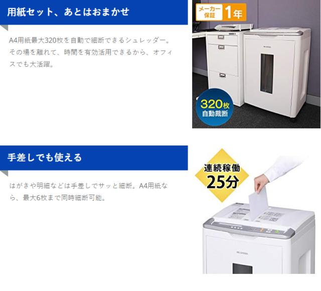シュレッダー 大型 AFS320C 自動 大容量 アイリスオーヤマ オートフィードシュレッダー A4 CD DVD ホチキス カード おすすめ オフィス 送料無料