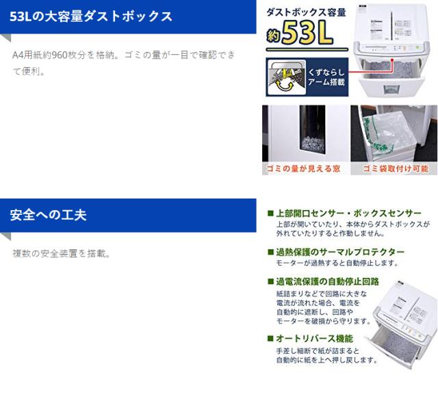 ダストボックスは大容量53L(A4コピー用紙960枚)。