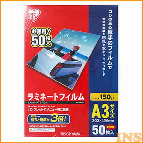 【50枚入】ラミネートフィルム(厚手タイプ) A3サイズ 150μm LZ-5A350 アイリスオーヤマ