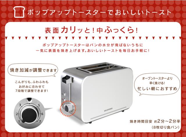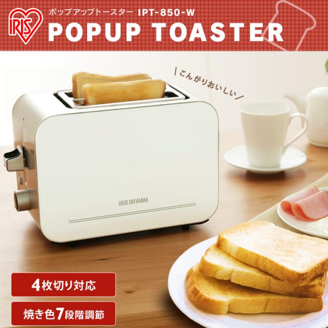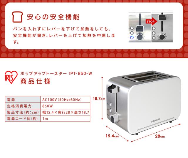 トースター ポップアップトースター 2枚焼き ポップアップ 一人暮らし 2枚 本体 アイリスオーヤマ IPT-850-W 送料無料