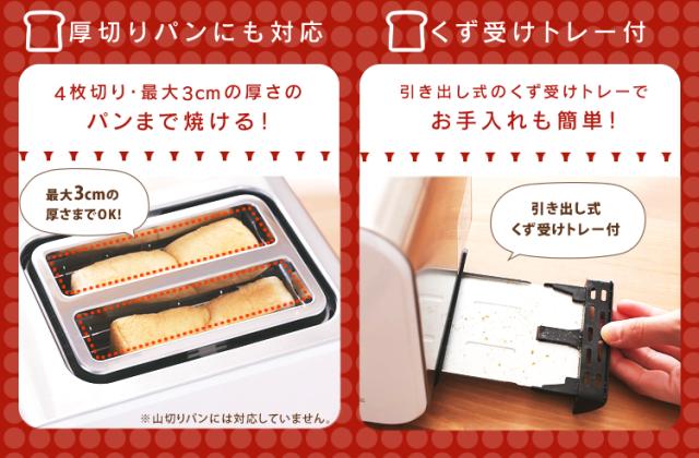 ・4枚切りまで焼けるワイドな投入口(最大3cmの厚さのパンに対応)
