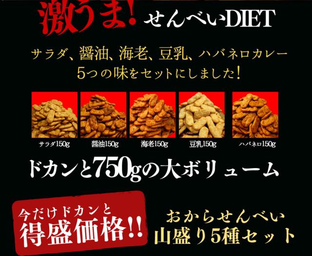 おからせんべい匠 5種 750g 送料無料 おせんべい スイーツ 煎餅 おから 大豆 ダイエット 健康食品 ヘルシー 大容量 たっぷり 大量 置き換え 食物繊維 たんぱく質