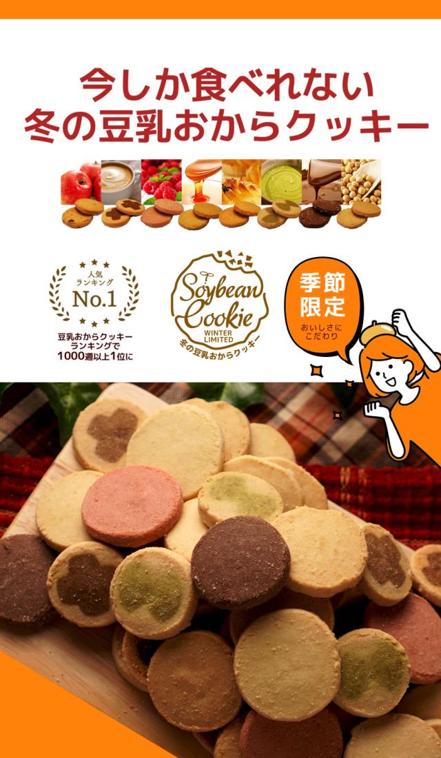 季節限定! 冬の豆乳おから クッキー 1kg 訳あり ダイエットクッキー おからクッキー大豆粉 おから 大豆 大豆スイーツ おからスイーツ 大容量 たっぷり 大盛り 置き換え 腹持ち 食物繊維