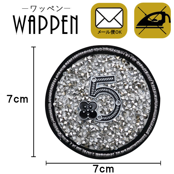 ワッペン アップリケ 刺繍 ストーンワッペン オリジナル ハンドメイド 手芸 縦7cm×横7cm 数字 5 丸型 キラキラワッペン母の日 プレゼント ギフト