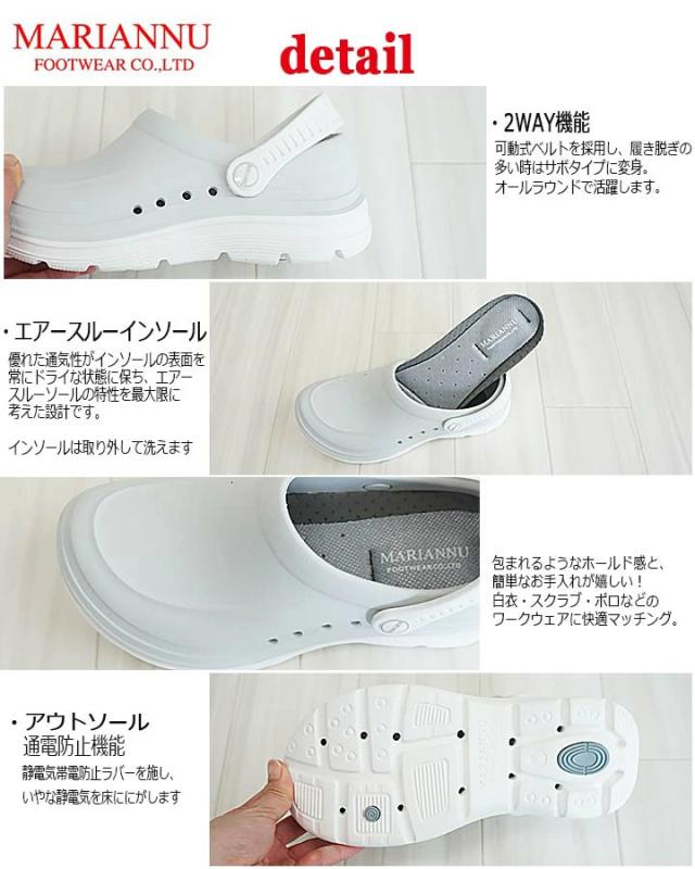 ナースシューズ マリアンヌ no.5050 病院勤務専門メーカー マリアンヌ ナース エステ 受付 事務 サンダル 疲れにくい 白 大きいサイズ MARIANNU サンダル 履きやすい 入浴介助 滑りにくい 2WAY機能 丸洗いタイプ 5L プレゼント ギフト