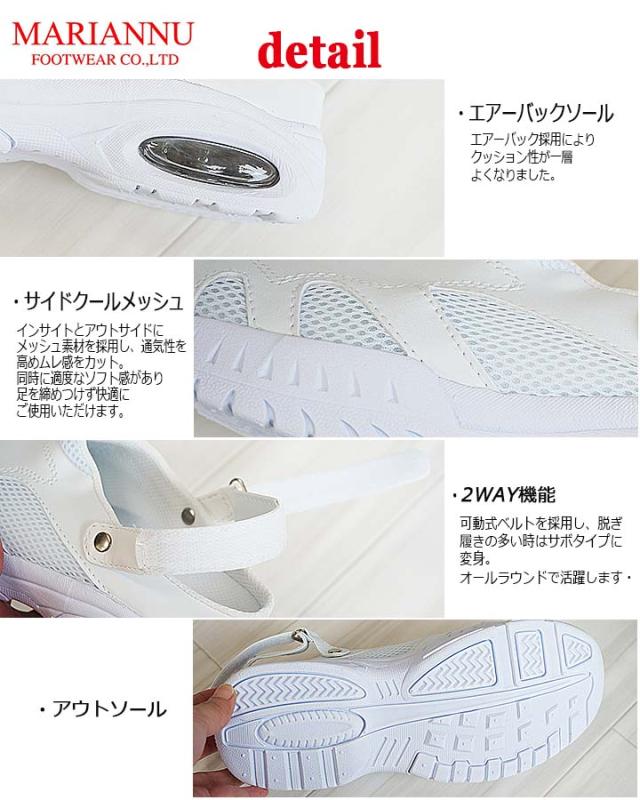 ナースシューズ マリアンヌ MARIANNU NO.V5 エアーバックソール 滑りにくい 2WAY機能 30.0cm ナースサンダル 病院勤務専門メーカー ナースシューズ 履きやすい ナース エステ 受付 事務 疲れにくい 白 大きいサイズ プレゼント ギフト