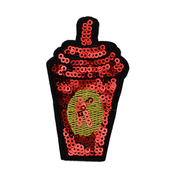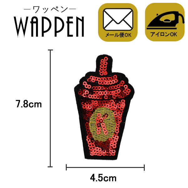 アップリケ ワッペン スパンコール アイロン接着 縦7.8cm×横4.5cm ドリンク 飲み物 キラキラワッペン 手芸 母の日 プレゼント ギフト