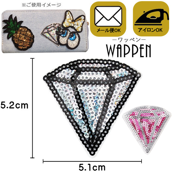 ワッペン スパンコール アイロン接着 ダイヤモンド デザイン キラキラワッペン アップリケ アイロンワッペン 手芸