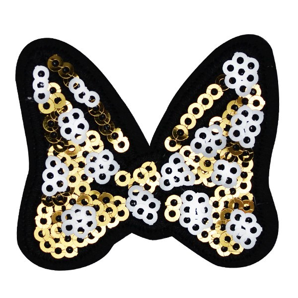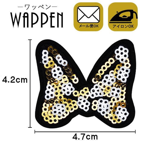 ワッペン アップリケ スパンコールワッペン アイロン接着 手芸 ハンドメイド 縦4.2cm×横4.7cm ゴールド リボン 水玉母の日 プレゼント ギフト