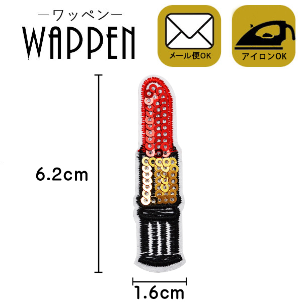 ワッペン アップリケ スパンコールワッペン アイロン接着 手芸 ハンドメイド 縦6.2cm×横1.6cm 口紅 リップ コスメ母の日 プレゼント ギフト