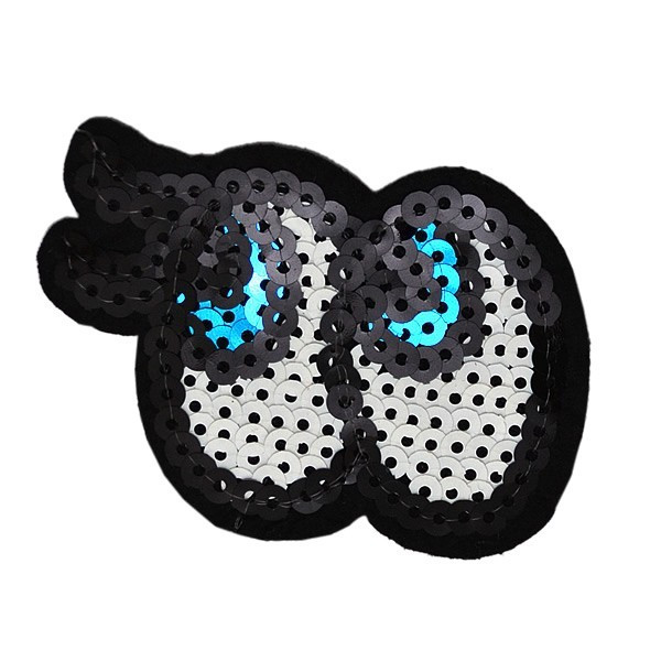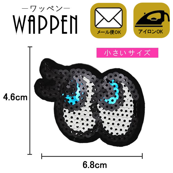 ワッペン スパンコール アイロン接着 縦4.6cm×横6.8cm 左向き 目 目玉 キラキラワッペン ハンドメイド アップリケ母の日 プレゼント ギフト