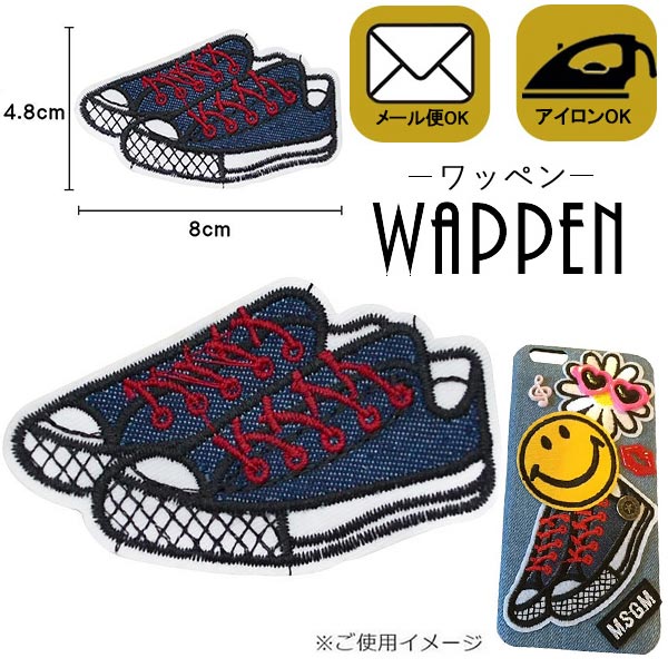 スニーカー ワッペン 刺繍 アイロン接着 縦4.8cm×横8cm 靴 シューズ ハンドメイド 手芸 アップリケ wappen カスタム 母の日 プレゼント ギフト