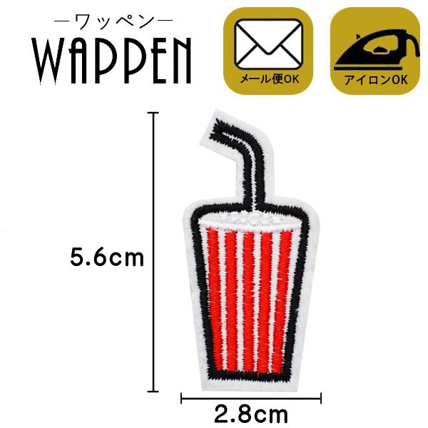 ワッペン 刺繍 アイロン接着 縦5.6cm×横2.8cm ドリンク デコ 入園 入学 かわいい おしゃれ わっぺん アップリケ 母の日 プレゼント ギフト
