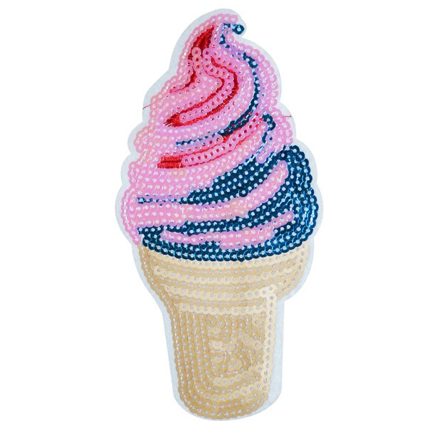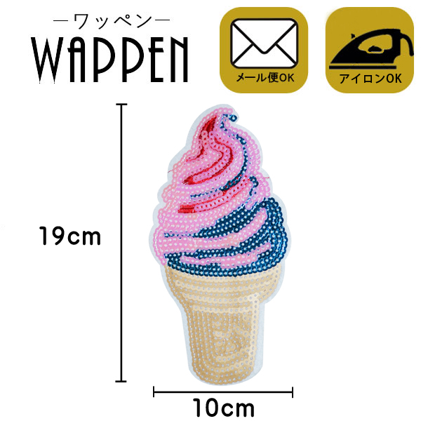 ワッペン アップリケ スパンコールワッペン アイロン接着 ビッグサイズ 縦19cm×横10cm ソフトクリーム アイス 食べ物母の日 プレゼント ギフト