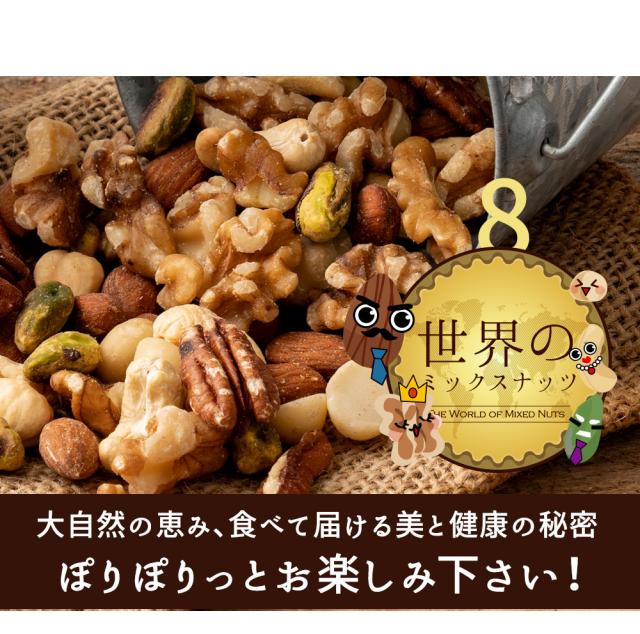 【全国一律送料無料】 新登場!ミックスナッツ!新しい当店のミックスナッツは「くるみ」「アーモンド」「カシューナッツ」「ピーカンナッツ」「ヘーゼルナッツ」「マカダミアナッツ」「ブラジルナッツ」「ピスタチオ」の大人気8種類のナッツが入ったミックスナッツです。 いつでもどこでも、食べたい時にお手軽にナッツの栄養チャージ♪♪ 1日1つかみ、ちょっと小腹が空いた時や夕飯前や晩酌のお供に是非 ミックスナッツ をお試しください。チャック付きで保存にも便利です♪ ※くるみは生のくるみを使用しています。 ※割れ・欠けが含まれる無選別商品となります。 ※収穫時期や入荷状況により、いずれかの産地のくるみをお届けしております。 産地にかかわらず、一粒一粒に想いを込め、品質基準を満たしたくるみをお届けいたします。 |