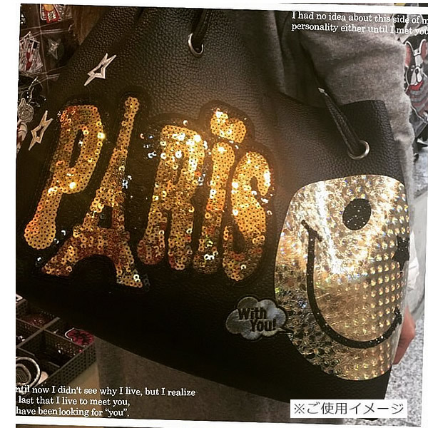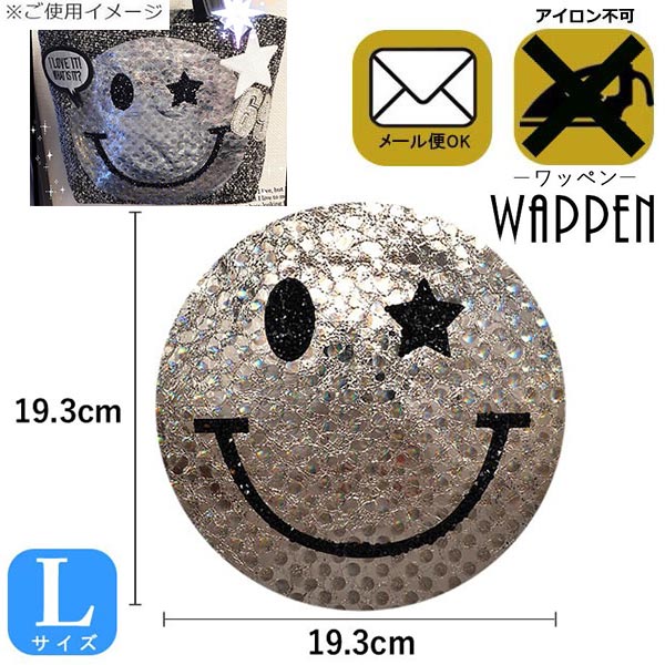 ワッペン アップリケ ストーンワッペン 大きい ビッグサイズ 縦19.3cm×横19.3cm ゴールド ウィンク スマイル母の日 プレゼント ギフト
