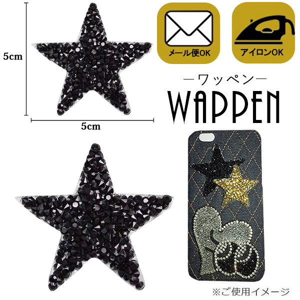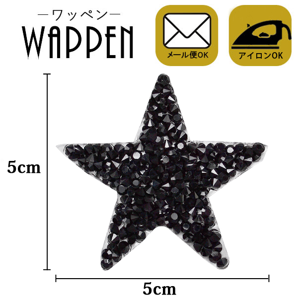 ワッペン 星 アップリケ ストーンワッペン アイロン接着 縦5cm×横5cm ブラック スター キラキラワッペン【メール便可】 母の日 プレゼント ギフト