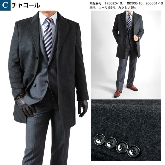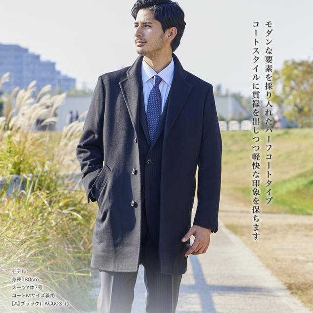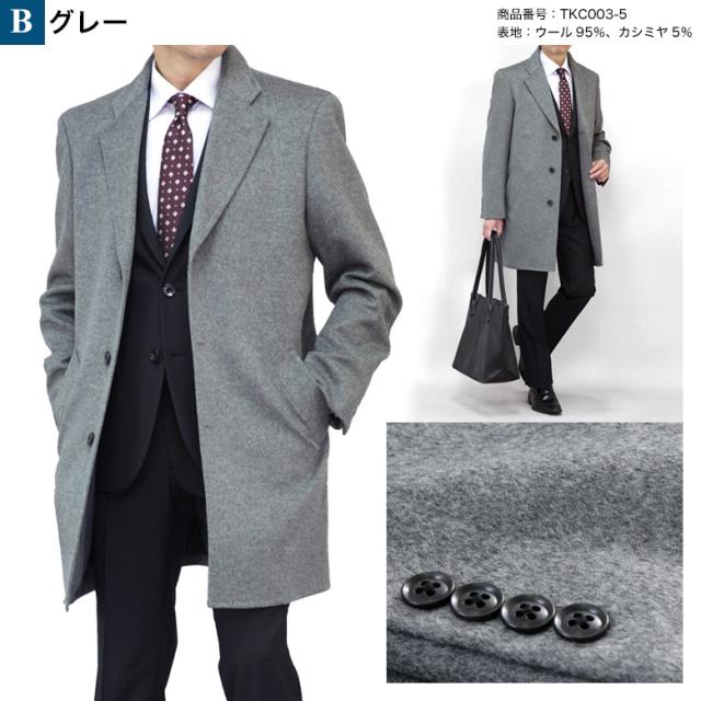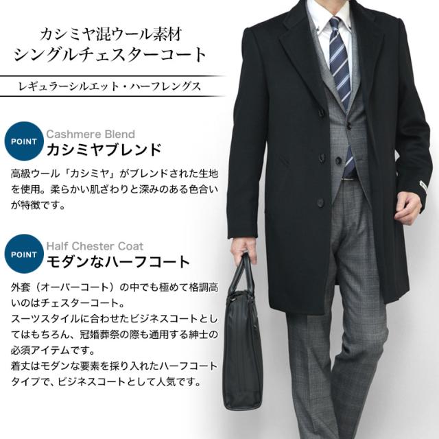 チェスターコート メンズ ハーフコート ビジネス カシミヤ混ウール メンズ ウール95%/カシミヤ5% ブラック/チャコール/グレー S/M/L/LL/3L 送料無料