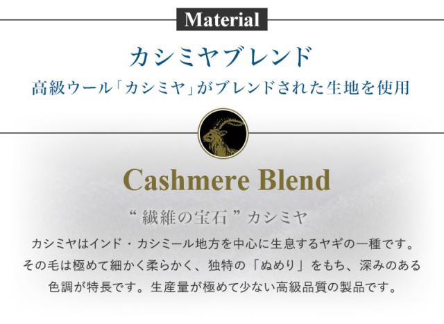 | ・表地:ウール95%、カシミヤ5%、 ・裏地:ポリエステル100% |