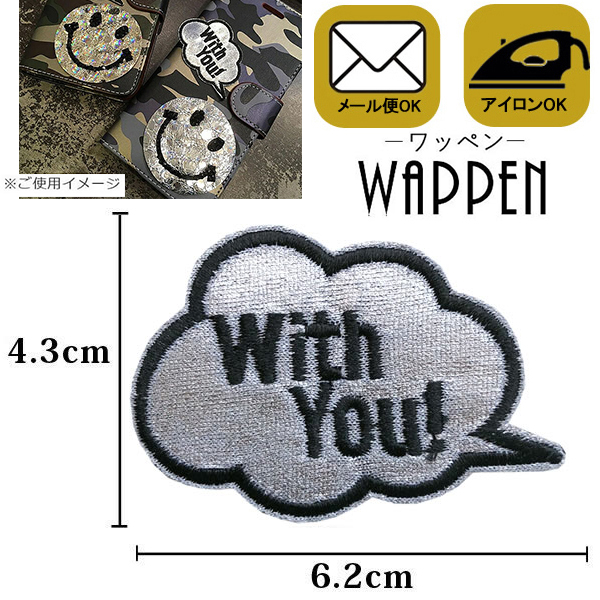 ワッペン 吹き出し 刺繍ワッペン アイロン接着 手芸 アルファベット 縦4.3cm×横6.2cm With you!シルバー アップリケ母の日 プレゼント ギフト