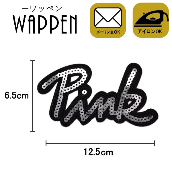 ワッペン アップリケ スパンコールワッペン アイロン接着 縦6.5cm×横12.5cm Pink アルファベット 英語ロゴ母の日 プレゼント ギフト