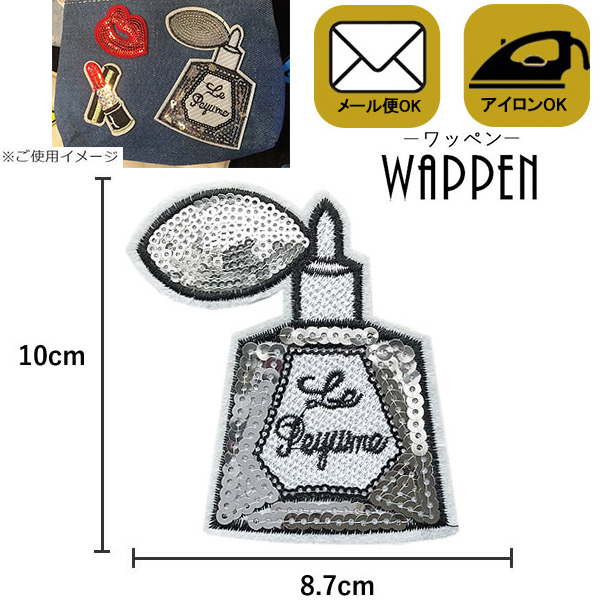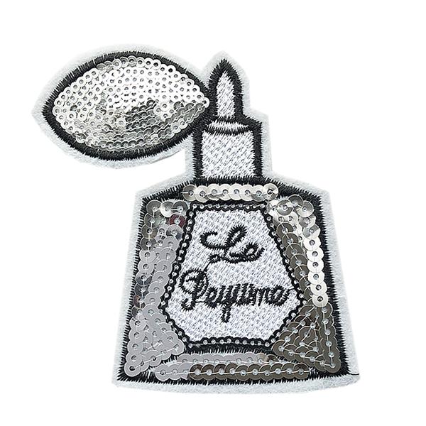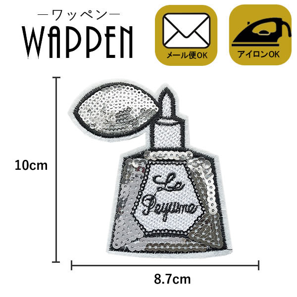 ワッペン スパンコール アイロン接着 縦10cm×横8.7cm シルバー 香水 パフューム キラキラワッペン 手芸 デコ カスタム母の日 プレゼント ギフト