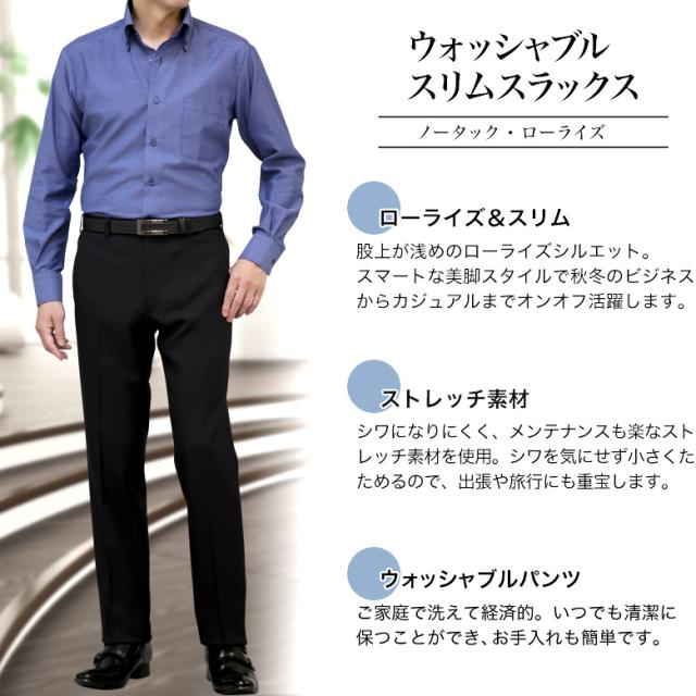 スラックス スリム メンズ ストレッチ ローライズ ウォッシャブル 秋冬春 【クロネコゆうパケット】ビジネス カジュアル テレワーク ストレッチ