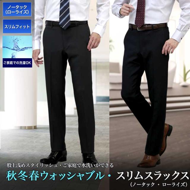 | 【スタイリッシュなスリムスタイル、ストレッチ素材で快適!】 秋冬春・3シーズン対応 ストレッチ素材ノータックスリムスラックス ご家庭の洗濯機で洗え、シワになりにくく乾燥が速くお手入れ楽々。 ストレッチ素材で立ったり座ったりの動作が楽々です。 ツッパリ感が少ないのに、細身でスタイリッシュなシルエットです。 |