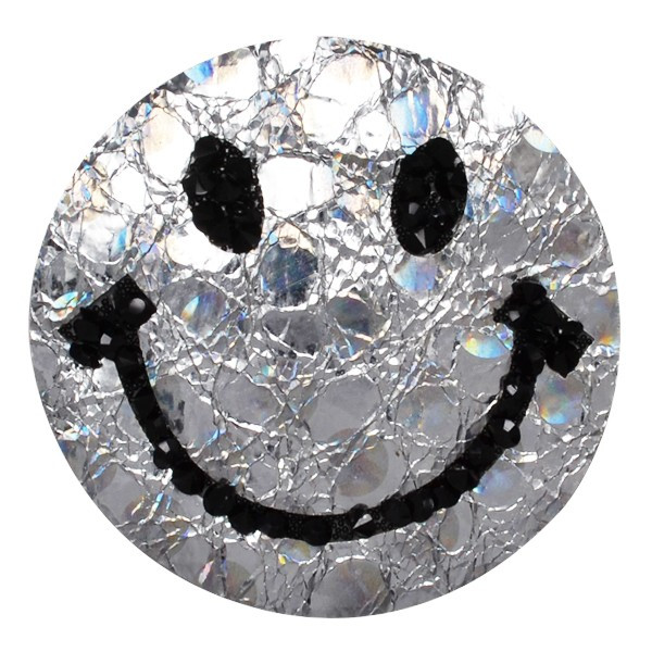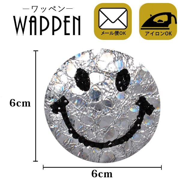 スマイル ワッペン ストーンワッペン アイロン接着 縦6cm×横6cm シルバー キラキラワッペン アイロンワッペン アップリケ母の日 プレゼント ギフト
