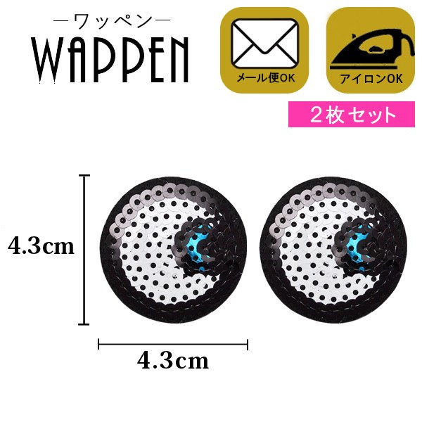 ワッペン スパンコール アイロン接着 ハンドメイド アップリケ 縦4.3cm×横4.3cm 目玉 2枚セット 目母の日 プレゼント ギフト