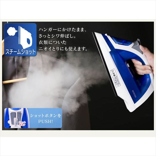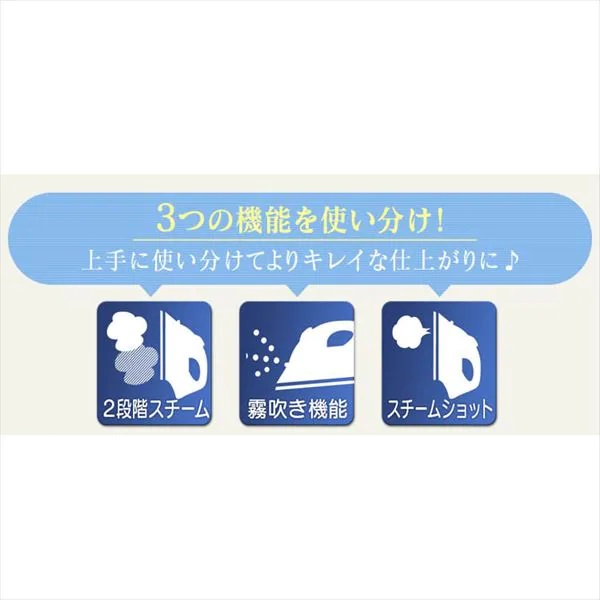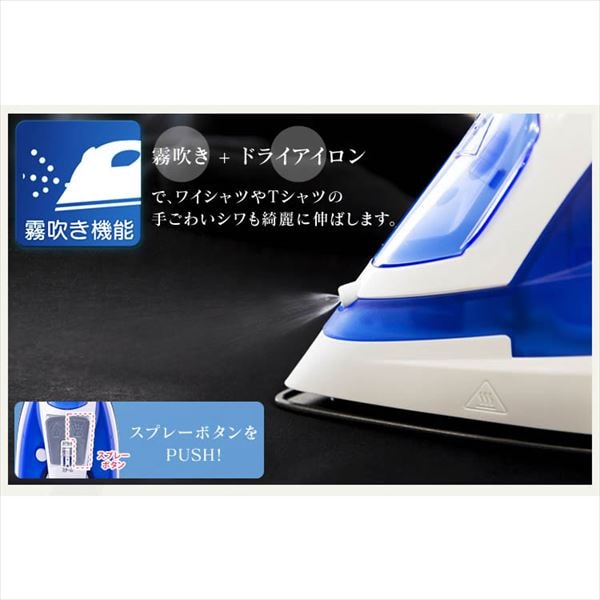 霧吹き機能+ドライアイロンでYシャツなどの手ごわいシワをきれいに伸ばせます。