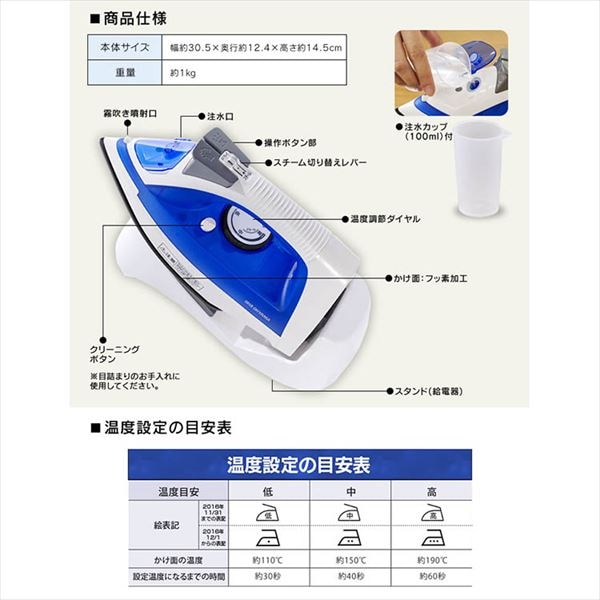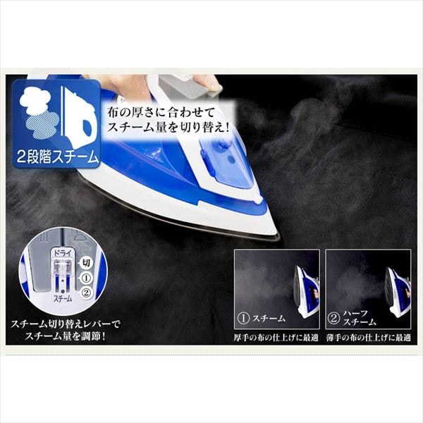 スチームの量は2段階、温度調節は無段階で調節できます。