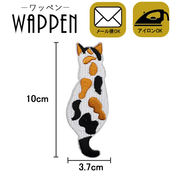 ワッペン アップリケ 刺繍ワッペン アイロン接着 手芸 手作り アニマルワッペン 縦10cm×横3.7cm 後ろ姿 ネコ cat 動物母の日 プレゼント ギフト