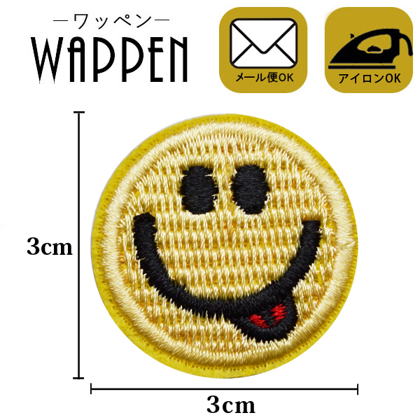 ワッペン スマイル アップリケ 刺繍ワッペン アイロン接着 手芸 縦3cm×横3cm スマイル ベロ イエロー母の日 プレゼント ギフト