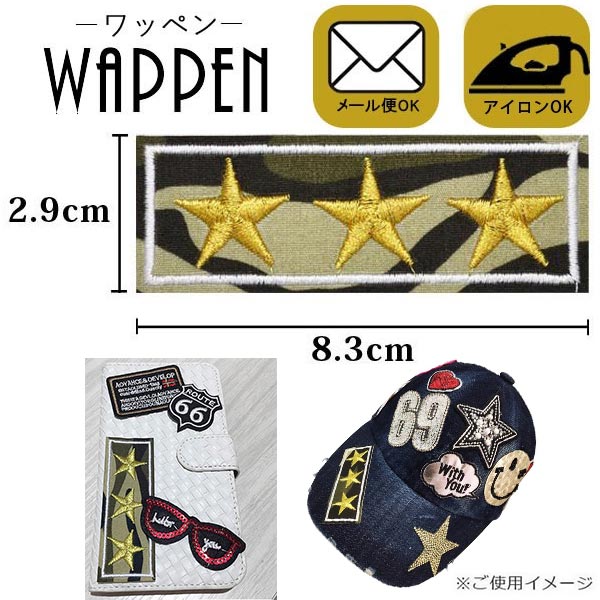 ミリタリー アップリケ ワッペン 刺繍ワッペン アイロン接着 縦2.9cm×横8.3cm カモフラ 迷彩 星 スター 星 手芸 母の日 プレゼント ギフト
