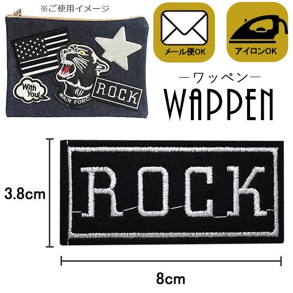 ミリタリー ワッペン 刺繍 アイロン接着 縦3.8cm×横8cm ROCK ロック 英語 アルファベット 手芸 アップリケ 母の日 プレゼント ギフト