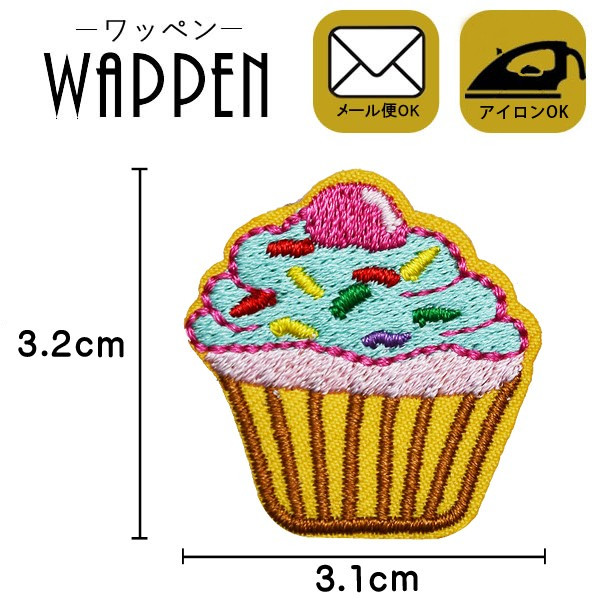 ワッペン 刺繍 アイロン接着 縦3.2cm×横3.1cm スイーツ カップケーキ デザート 食べ物 アイロンワッペン アップリケ 母の日 プレゼント ギフト