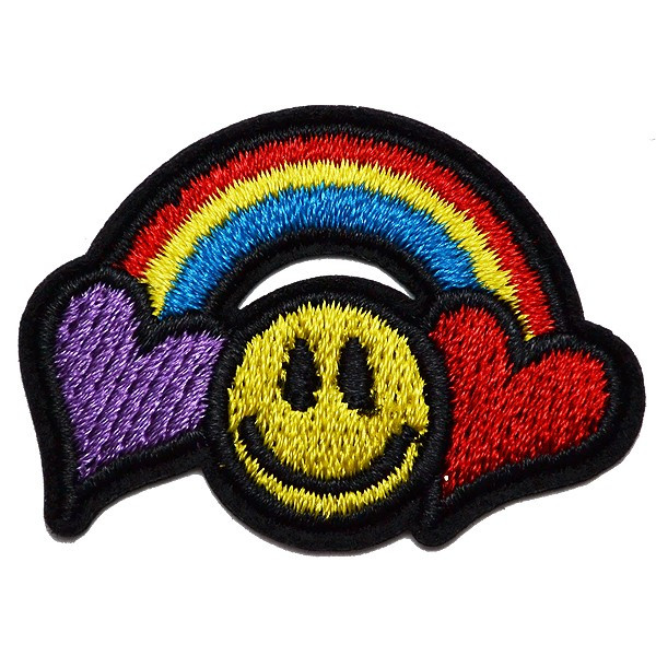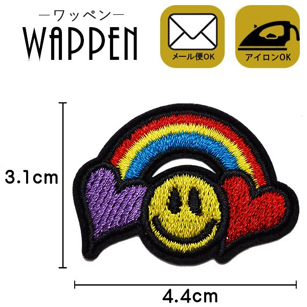 ワッペン 刺繍 アイロン接着 縦3.1cm×横4.4cm 虹 スマイル ニコちゃん ハート アイロンワッペン デコ アップリケ母の日 プレゼント ギフト