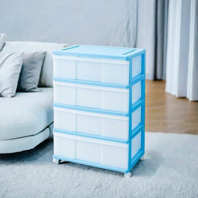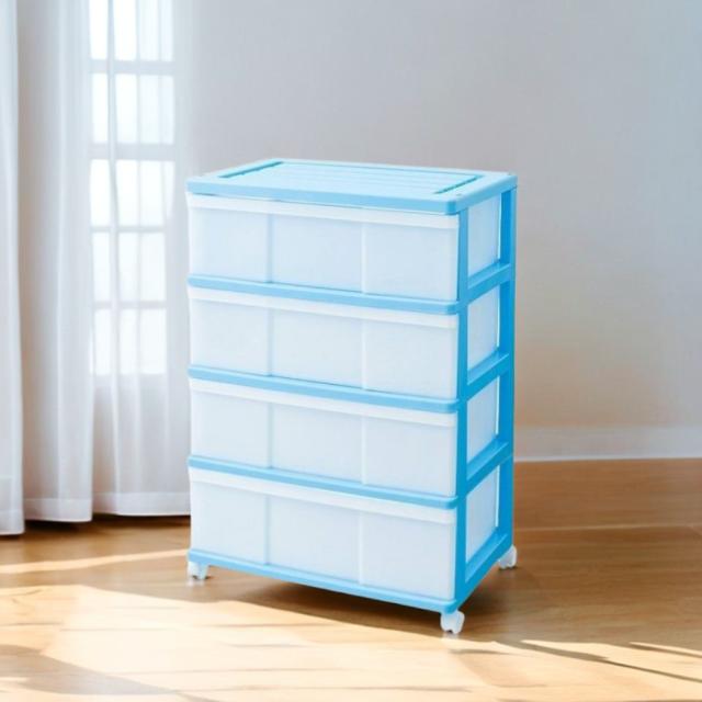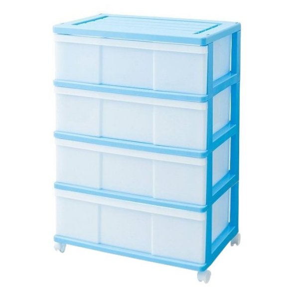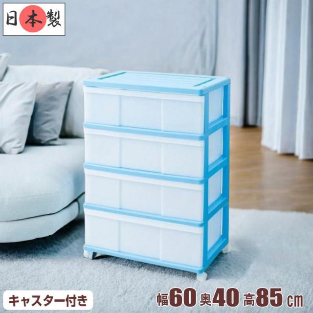 収納ケース 引き出し ワイド カラフルチェスト プラスチック 4段 幅60cm おしゃれ ブルー キャスター付き 日本製 送料無料