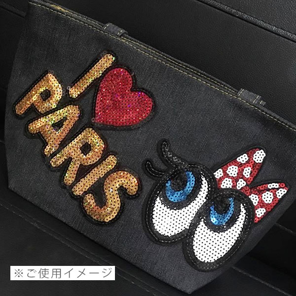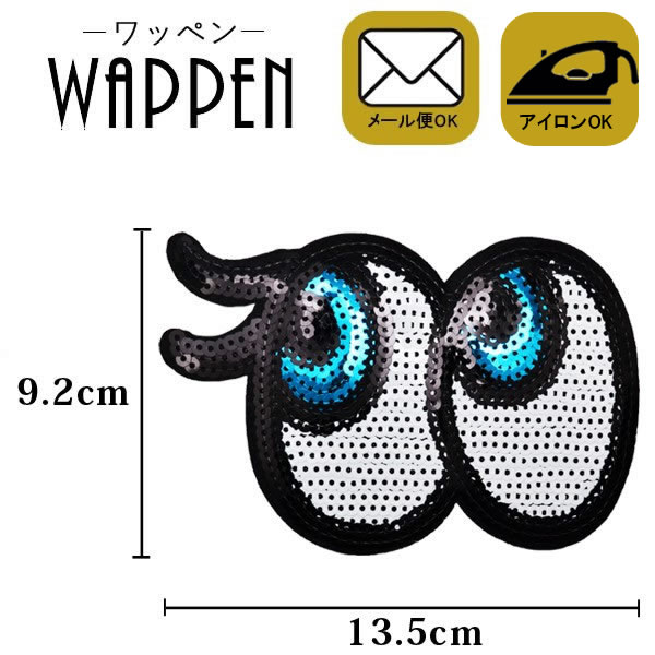 ワッペン アップリケ スパンコールワッペン アイロン接着 ビッグサイズ 縦9.2cm×横13.5cm 目玉 左向き 目 まつ毛母の日 プレゼント ギフト