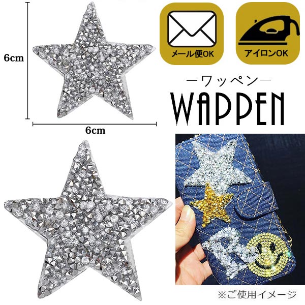 ワッペン ストーンワッペン アイロン接着 縦6cm×横6cm シルバー 星 スター キラキラワッペン アイロンワッペン 母の日 プレゼント ギフト