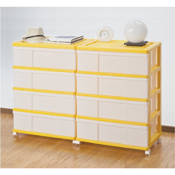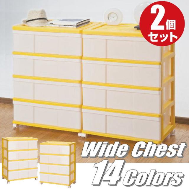 収納ボックス 収納ケース 引き出し ワイド チェスト プラスチック 4段 2個組 幅60cm おしゃれ イエロー 送料無料【自社製造】