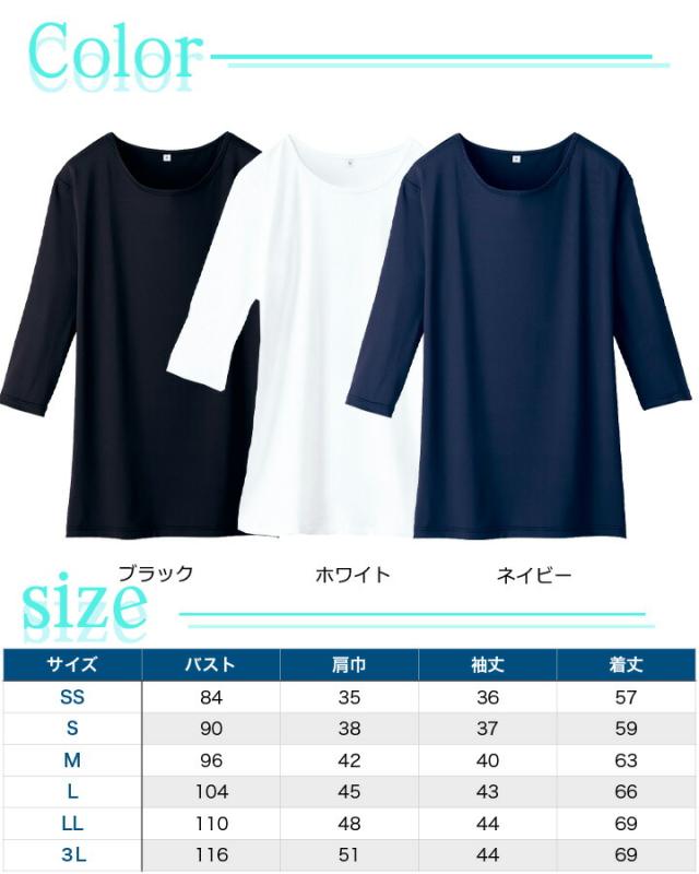 七分袖インナー Tシャツ ホワイセル wh90029 レディース メンズ 自重堂 メディカルウェア 医師 医療用 ストレッチ 吸汗速乾 抗菌消臭【即日発送】【送料無料】
