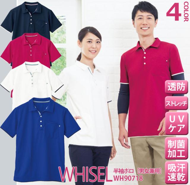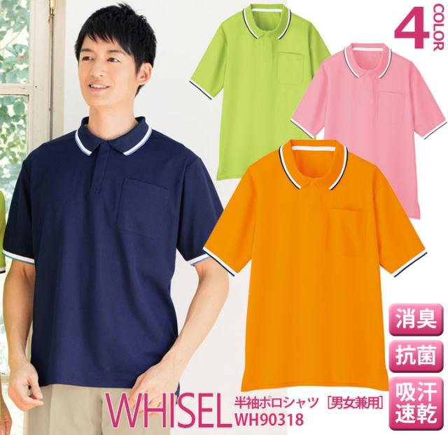 半袖ポロシャツ 男女兼用 whisel ホワイセル wh90318 女性用 レディース メンズ 男性 自重堂 ヘルパーウェア 介護 吸汗速乾 抗菌 消臭