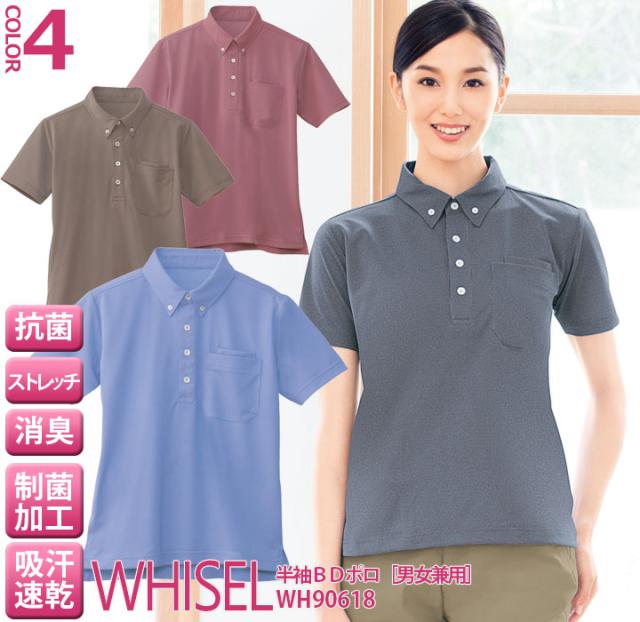 半袖BDポロシャツ 男女兼用 whisel ホワイセル wh90618 女性用 レディース メンズ 男性 自重堂 ヘルパーウェア 介護 抗菌 消臭 吸汗速乾 制電加工 ストレッチ